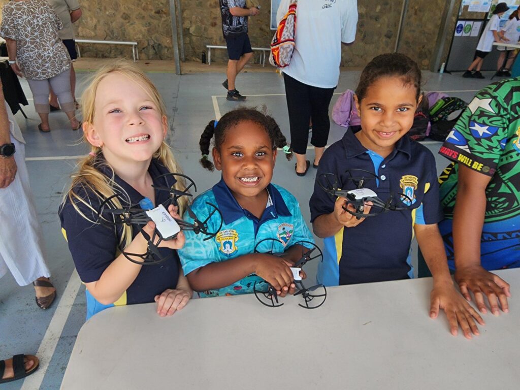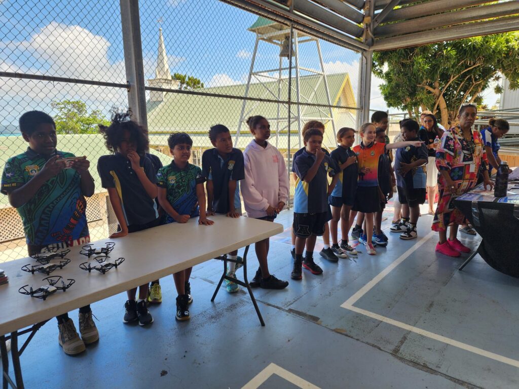 As part of our Yadhu Muru partnership, we welcomed our friends from Brissy, St Finbarr’s Primary School Ashgrove, St Thomas More College, Sunnybank and the TSRA Land and Sea Management Unit back to TI to share in the fun, from drones to gadgets and gizmos galore.